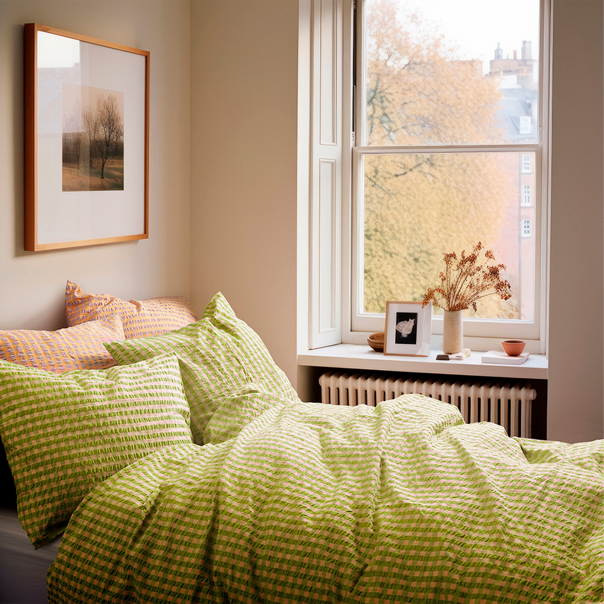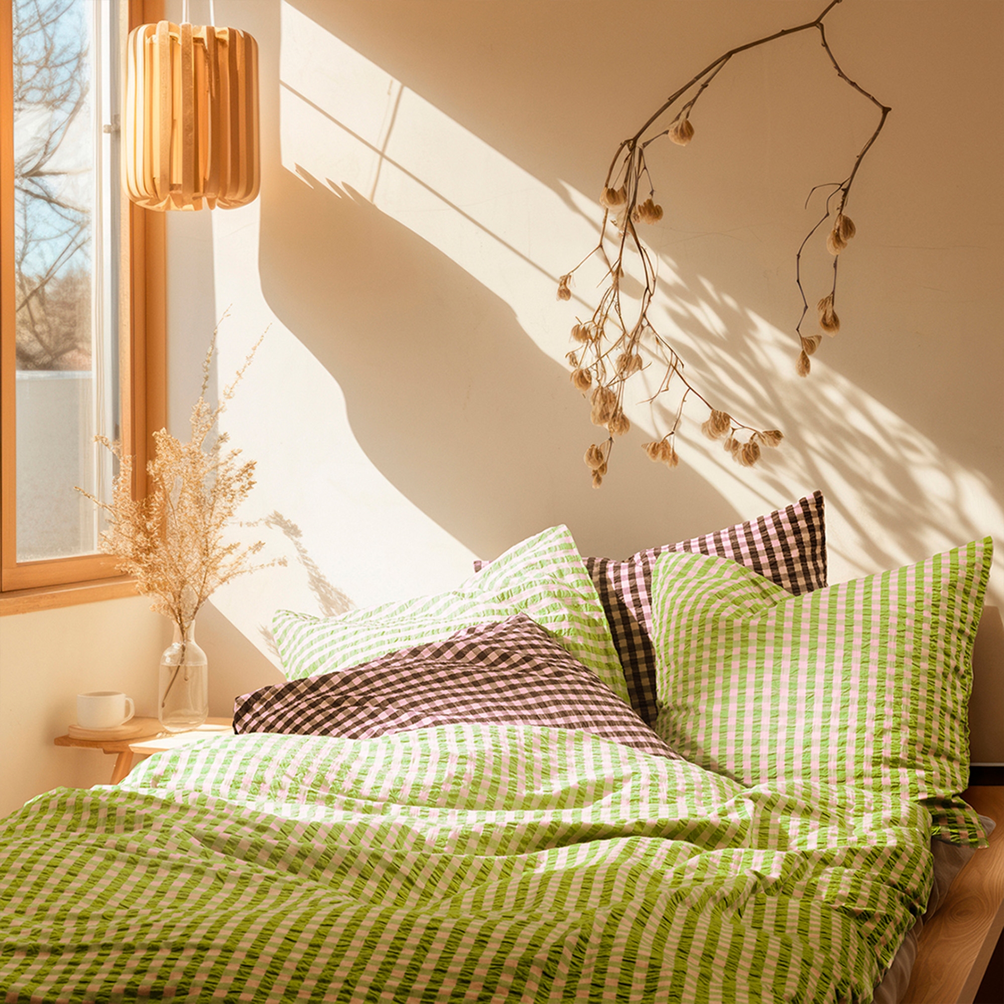 Het zachte katoen in combinatie met de gekreukte structuur geeft een unieke luxe beleving. Tegelijkertijd is het beddengoed praktisch in het dagelijks gebruik, omdat het niet gestreken hoeft te worden en zijn mooie uitstraling was na was behoudt. De fijne ruitjes in groen geven een rustig en stijlvol uiterlijk dat past in zowel moderne als klassieke slaapkamers.