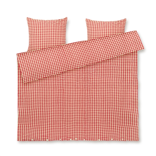 Het zachte katoen gecombineerd met de gekreukte structuur geeft een unieke gevoel van luxe. Tegelijkertijd is het beddengoed praktisch in het dagelijks gebruik, omdat het geen strijkwerk vereist en zijn mooie uitstraling behoudt was na was. Het fijne ruitpatroon in rood geeft een rustig en stijlvol uiterlijk dat past in zowel moderne als klassieke slaapkamers.