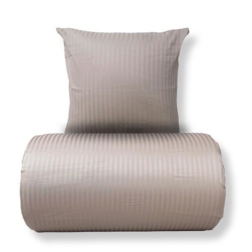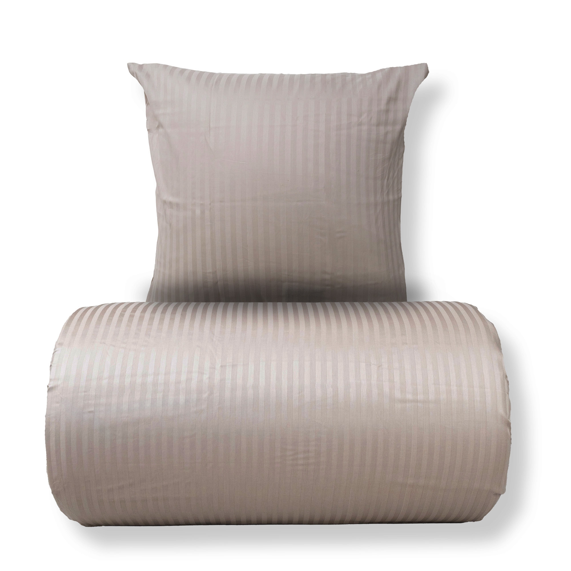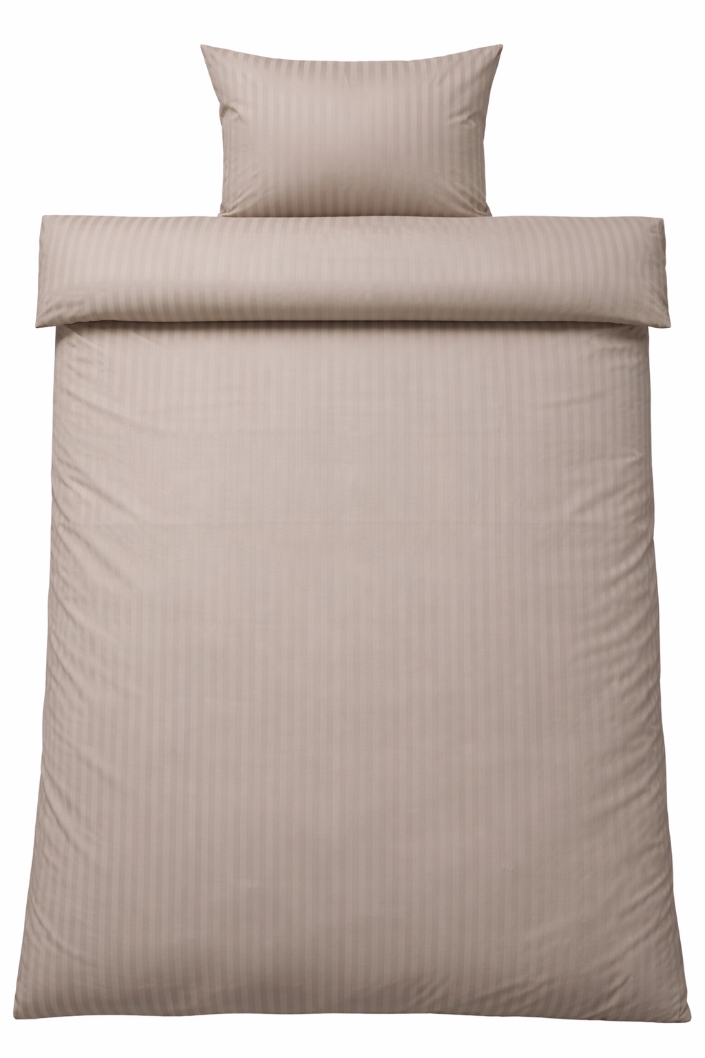 Creëer veilige en comfortabele omstandigheden voor de slaap van uw kind met deze exclusieve junior set in 100% katoensatijn van Borg Living. Het beddengoed is jacquardgeweven met subtiele, effen zandkleurige strepen, die een rustig en tijdloos uiterlijk geven – perfect voor zowel meisjes- als jongenskamers.