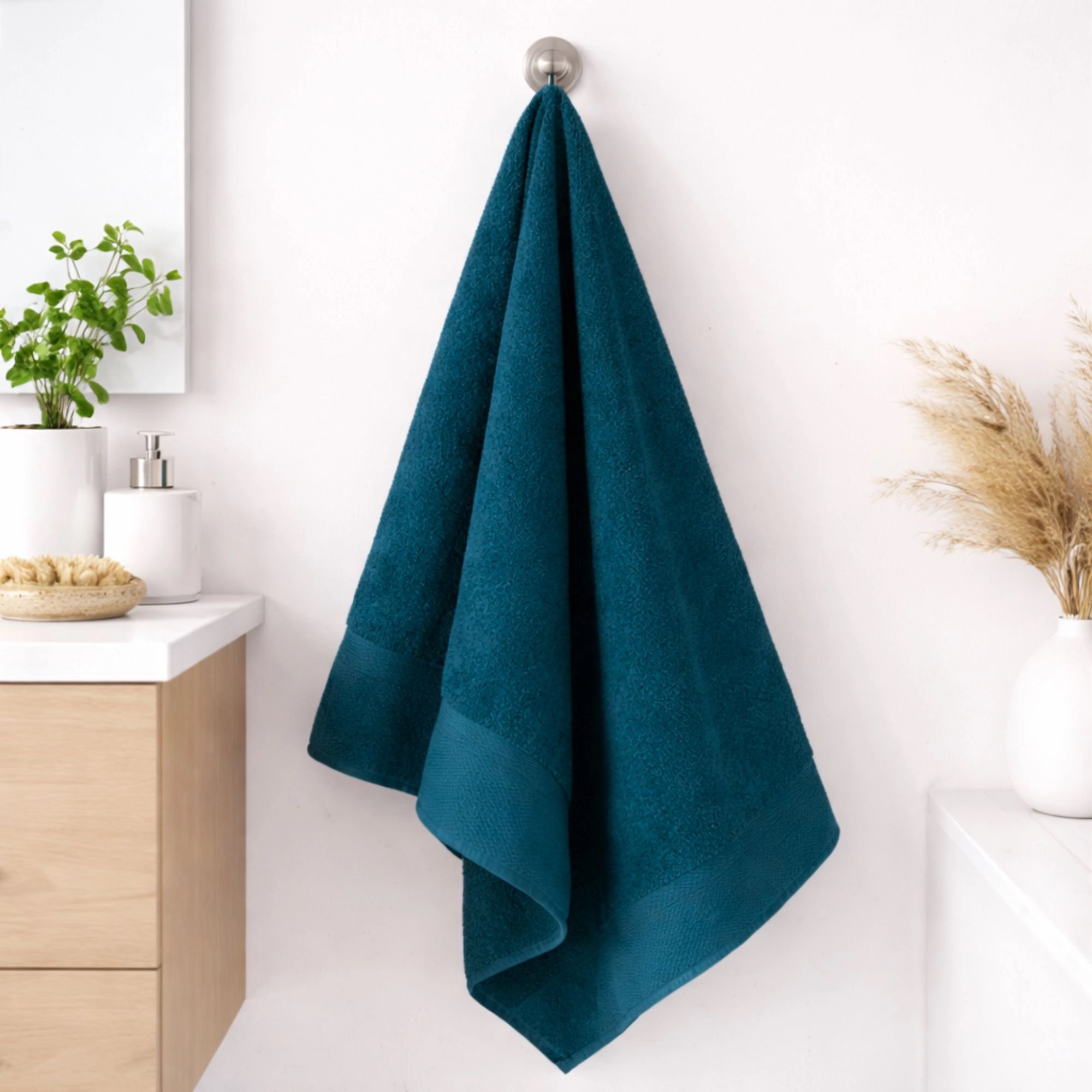 Voorpagina »Handdoeken Katoenen handdoeken - 100% katoen - 6-pack - Valmue - Donkerblauw stuks, Klaproos Bespaar48% By Borg 92,9947,99EURBespaar 45,- Op voorraad Aantal In winkelwagen Bekijk meer van:By Borg Artikelnr:H795-sampak Lees onze handdoekengids Bekijk ons grote assortiment badkameraccessoires Bekijk ons ruime assortiment badjassen voor het hele gezin Heb je vragen over het product? Voelt zacht en prettig aan op de huidVolle en slijtvaste kwaliteitGoed absorptievermogen en slijtvaste kwaliteit Maat: 6 stuks. 2 stuks 40x60 cm 2 stuks 50x100 cm 2 stuks 70x140 cm Type: Badehanddoeken, handdoeken en gastenhanddoeken Gewicht: 500 gram/m² Kwaliteit: 100% zacht katoen Kleur: Donkerblauw Design: Valmue Textielsoort: Katoen Merk: By Borg Ophanglus: Ja, boven en zijkant Wassen: 60° Kan in de droogtrommel: Ja Certificering: STANDARD 100 by OEKO-TEX® (2014OK0955). Uw garantie dat het product vrij is van schadelijke chemicaliën voor de gezondheid. Katoenen handdoeken in 6-pack Verwen uw badkamer met deze elegante handdoeken set van By Borg. Met deze 6-pack krijgt u zowel functionaliteit als stijl in één — perfect voor wie een mooie en uitnodigende inrichting wil. Deze 6-pack bestaat uit 2 stuks 40x60 cm gastenhanddoeken, 2 stuks 50x100 cm handdoeken en 2 stuks 70x140 cm badehanddoeken. De handdoeken zijn vervaardigd van 100% katoen, wat zorgt voor een zachte en aangename oppervlakte die prettig aanvoelt op de huid na het douchen. De praktische ophanglus maakt het eenvoudig om de handdoek op te hangen, zodat hij altijd klaar is voor gebruik. Een uitstekende keuze voor wie zachte, slijtvaste en stijlvolle handdoeken in het dagelijks leven wil. Bekijk alle handdoekensets hier Katoen is een natuurlijk materiaal dat bekend staat om zijn zachtheid, duurzaamheid en goede absorptievermogen. De dichte kwaliteit van 500 g/m² geeft de handdoek een luxe gevoel en zorgt tegelijkertijd voor goede slijtvastheid, zodat de handdoek keer op keer gebruikt kan worden. Voordelen van katoenen handdoeken: Zachte en aangename kwaliteit voor de huid Goed absorptievermogen Slijtvaste kwaliteit De handdoeken zijn STANDARD 100 by OEKO-TEX® gecertificeerd, wat uw garantie is dat het product getest is en vrij van schadelijke chemicaliën voor de gezondheid. We raden altijd aan om geheel nieuwe handdoeken eerst kort in koud water te laten weken voordat u ze voor de eerste keer wast — daarmee verbetert u het absorptievermogen van de handdoeken. Daarnaast kunnen de handdoeken met voordeel in de droogtrommel worden gedroogd om hun volume en zachtheid te behouden. Lees alles over handdoeken in onze handdoekengids hier By Borg By Borg is een Deens merk dat sinds 2013 woontextiel ontwerpt met aandacht voor kwaliteit, comfort en moderne stijl. Het assortiment omvat onder andere dekbedden, kussens, beddengoed en handdoeken, die allemaal zijn gemaakt om het dagelijks leven aangenamer te maken. Met oog voor detail en goede materialen combineert By Borg functionaliteit met een strak uiterlijk. Een uitstekende keuze voor wie zowel comfort als design in huis wil. Bekijk het volledige assortiment van By Borg hier Terug naar Handdoeken