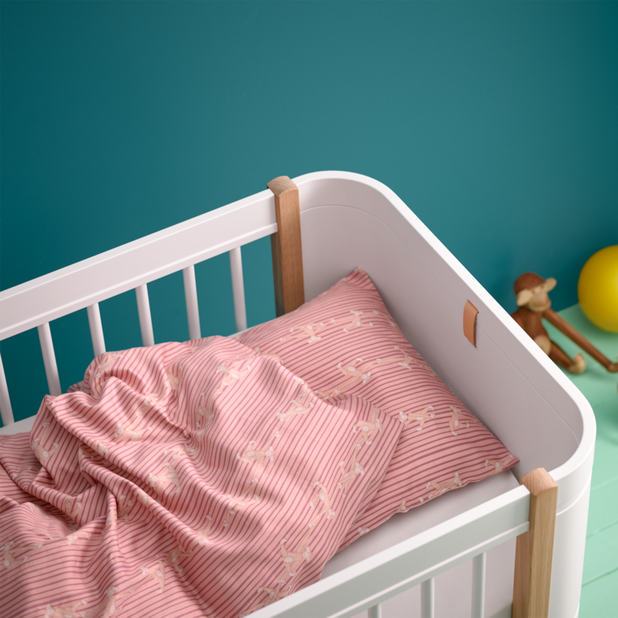 Voorpagina »Beddengoed » Beddengoed voor kinderen » Beddengoed voor baby's 70x100 cm Kay Bojesen beddengoed - 100% biologisch katoensatijn - Babybeddengoed 70x100 cm - Aap Roze Kay Bojesen Scherpe prijs:54,49EUR Op voorraad Aantal In winkelwagen Bekijk meer van:Kay Bojesen Artikelnr:39392-7 Lees onze beddengoedgids Bekijk ons ruime assortiment hoeslakens Bekijk ons ruime assortiment dekbedden 70x100 Heb je vragen over het product? Ademend materiaal dat zorgt voor een comfortabele nachtrustZachte kwaliteit die vriendelijk is voor de babyhuidPraktische ritssluiting in zowel dekbedovertrek als kussensloop Dekbedovertrek: 70x100 cm - babybeddengoedset Kussensloop: 40x45 cm Materiaal: 100% biologisch katoensatijn Kleur: Roze Design: Aap Brand: Rosendahl - Kay Bojesen Sluiting: Dekbedovertrek en kussensloop sluiten met rits Wassen: 60° Drogen: Ja Strijken: Ja Certificering: STANDARD 100 by OEKO-TEX®. Uw garantie dat het product vrij is van schadelijke chemicaliën. Certificering: GOTS-gecertificeerd (GOTS Organic Certified by CU1026087). Uw garantie voor biologische textielproductie met aandacht voor milieu, verantwoordelijkheid en vrijwaring van schadelijke chemicaliën gedurende het hele productieproces. Kay Bojesen Aap babybeddengoed - biologisch beddengoedset in roze Maak bedtijd bijzonder met dit prachtige babybeddengoed van Kay Bojesen in maat 70x100 cm. Het mooie beddengoedset is versierd met de iconische aap, die met zijn speelse en charmante uitstraling vreugde en geborgenheid brengt voor de allerkleinsten. Het babybeddengoed is vervaardigd van 100% biologisch katoensatijn, wat zorgt voor een extra zacht, glad en prettig oppervlak tegen de gevoelige huid van het kind. De luxueuze satijnbinding garandeert hoge comfort en maakt het makkelijker voor het kind om tot rust te komen en goed te slapen. Met zowel GOTS-certificering als STANDARD 100 by OEKO-TEX® bent u verzekerd van een beddengoedset zonder schadelijke chemicaliën en geproduceerd met aandacht voor milieu en gezondheid. Dit maakt het ideaal voor baby’s, waarbij veiligheid en kwaliteit centraal staan. Het mooie roze design met de bekende Kay Bojesen aap maakt het beddengoed zowel decoratief als gezellig in de kinderkamer en is bovendien een uitstekend cadeau-idee voor een doop, verjaardag of andere speciale gelegenheden. Het ademende katoensatijn helpt de temperatuur te reguleren en zorgt voor een comfortabele nachtrust het hele jaar door. Tegelijkertijd is het materiaal duurzaam en gemakkelijk te onderhouden, zodat het zacht en mooi blijft, was na was. Bekijk alle babybeddengoed hier Kay Bojesen kinderbeddengoed Kay Bojesen is bekend om zijn iconische en speelse design, dat door generaties heen vreugde heeft gebracht bij zowel kinderen als volwassenen. Met kinderbeddengoed geïnspireerd door de klassieke figuren wordt dezelfde warmte, verbeeldingskracht en persoonlijkheid in de kinderkamer gebracht. Kay Bojesen beddengoed combineert Deense designtraditie met comfort van hoge kwaliteit. De bekende motieven creëren een veilige en gezellige sfeer waarin kinderen kunnen wegdromen in een wereld vol avontuur en herkenbare figuren. De materialen zijn zorgvuldig geselecteerd met aandacht voor zachtheid, ademend vermogen en duurzaamheid, zodat uw kind een comfortabele nachtrust krijgt. Bekijk het volledige assortiment van Kay Bojesen hier Terug naar Beddengoed voor baby's 70x100 cm