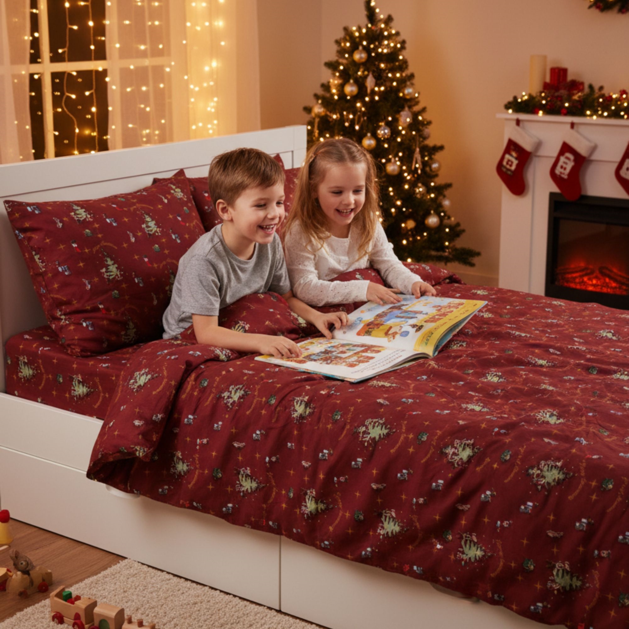 Maak december extra gezellig met dit sfeervolle kerstbeddengoed van By Mats. Het rode ontwerp met kerstmuizen creëert een magische kerstsfeer in de kinderkamer en maakt het naar bed gaan extra bijzonder in de feestperiode.