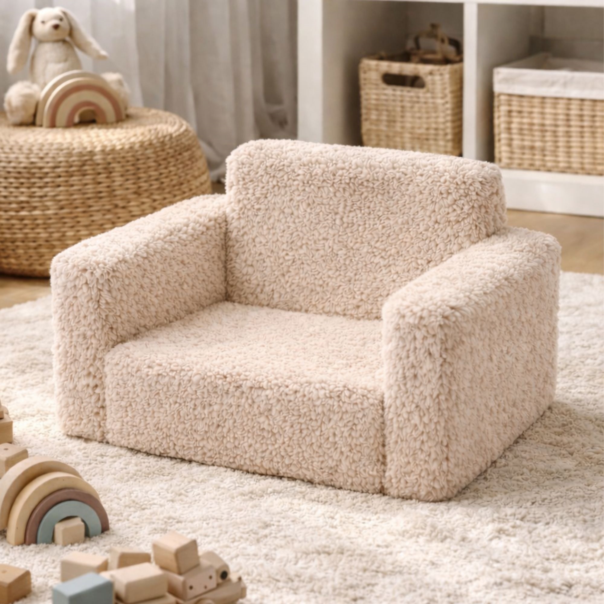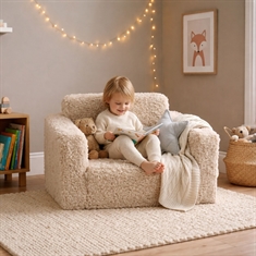 Deze ontzettend zachte vouwfauteuil voor kinderen is ontworpen met focus op comfort en meerdere functies in één product. Wanneer de stoel is opgevouwen, werkt hij als een gezellig klein fauteuil op kinderhoogte. Wanneer hij wordt uitgeklapt, verandert hij in een mini-matras dat gebruikt kan worden voor spel, ontspanning of logerende vriendjes. Dat maakt het een voor de hand liggende keuze voor zowel de kinderkamer als de woonkamer.