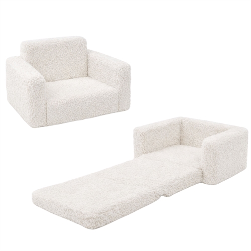 Deze ongelooflijk zachte opvouwbare kinderstoel is ontworpen met focus op comfort en multifunctionaliteit. Wanneer de stoel is ingeklapt, fungeert hij als een gezellig laag kinderfauteuiltje. Wanneer hij wordt uitgeklapt, verandert hij in een mini-matras dat gebruikt kan worden voor spelen, ontspannen of logeerfeestjes. Daardoor is hij een voor de hand liggende keuze voor zowel de kinderkamer als de woonkamer.