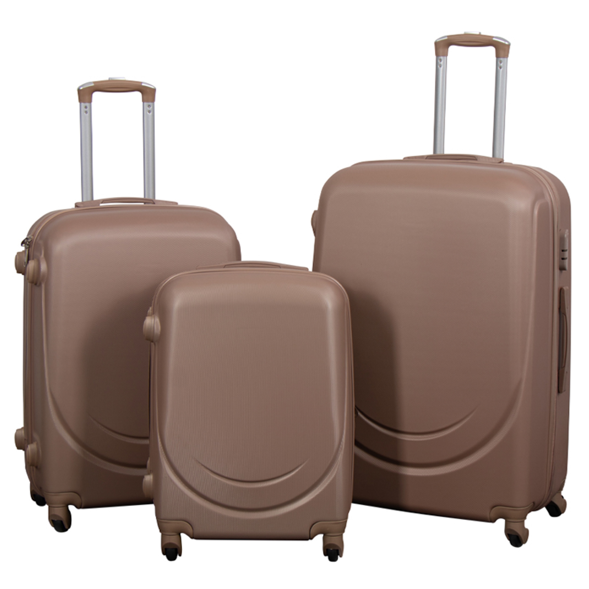 Voorpagina »Koffers Kofferset - 3 stuks - Hardcase reiskoffers - Classic mokka - Lichtgewicht koffers Bespaar55% Borg Living 394,99176,99EURBespaar 218,- Gratis verzending voor dit artikelWeinig op voorraad Aantal In winkelwagen Bekijk meer van:Borg Living Artikelnr:PR465 Bekijk ons assortiment grote handdoeken Bekijk ons assortiment toilettassen en beautyboxen Bekijk ons assortiment tassen en rugzakken Heb je vragen over het product? Kofferset - 3 stuks.Allemaal met 360° draaibare wielenHardcase - Mokka Materiaal: Hardcase - lichtgewicht ABS-kunststof Kleur: Mokka Ontwerp: Classic Aantal: 3 stuks kwaliteitskoffers Slot: Ja Wielen: 4 x 360° zwenkwielen Telescopische handgreep: Ja, 2 standen Draaghandvat: Ja, 2 stuks Indeling: 2 compartimenten - gescheiden door een doorlopende ritssluiting Binnenband met gesp: Ja, verstelbare gekruiste banden Afmetingen - Gewicht - Volume Grote koffer: 75x50x29 cm • 3,8 kg • 104 L Middelgrote koffer: 65x44x26 cm • 3,0 kg • 60 L Handbagage koffer: 57x36x23 cm • 2,5 kg • 36 L Kofferset in een prachtige en exclusieve uitvoering. De set is mokkakleurig in een klassiek design. Functionele en comfortabele kofferset in een heerlijk en exclusief design. De set bestaat uit 3 ruime koffers in praktische maten - zo ben je gedekt, wat je reiswensen ook zijn. De koffers zijn gemaakt van robuust en duurzaam lichtgewicht ABS-kunststof, waardoor ze zowel robuust als bestand zijn tegen de harde klappen en druk die kunnen optreden op bijvoorbeeld een bagageband. Met deze set ben je verzekerd van een solide en duurzame kofferset voor onderweg. De koffers zijn voorzien van 2 praktische draaggrepen: één aan de zijkant, een telescoopgreep en een draaggreep aan de bovenkant. De telescopische handgreep is in 2 standen verstelbaar. Aan één kant van de koffers bevinden zich 4 kleine 'voetjes', zodat ze stabiel staan wanneer je ze neerzet. Zo voorkom je natte en vieze koffers. De koffers hebben 4 lichtlopende 360° zwenkwielen, wat ze makkelijk en handig maakt om mee te nemen door de luchthaven of het station. De koffers zijn ongelooflijk gemakkelijk te vervoeren en te manoeuvreren. Alle koffers in de set hebben een geïntegreerd slot en een sterke ritssluiting. Maak je reisuitrusting compleet met een slimme en praktische toilettas. Bekijk ons aanbod hier. De koffers zijn van binnen minstens zo functioneel als van buiten - ze kunnen worden opgedeeld in twee aparte compartimenten. Het ene compartiment heeft verstelbare bandjes voor de kleding, zodat ze op hun plaats blijven, en het andere compartiment heeft een ritssluiting zodat je geen losse voorwerpen over je kleding hoeft te laten glijden. Terug naar Koffers