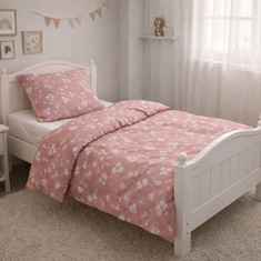 Deze leuke junior dekbedovertrekset heeft een lief en rustig design met kleine konijnen, worteltjes en subtiele bloemdetails. De roze achtergrond geeft de set een natuurlijke en harmonieuze uitstraling, die perfect past in een gezellige kinderkamer.