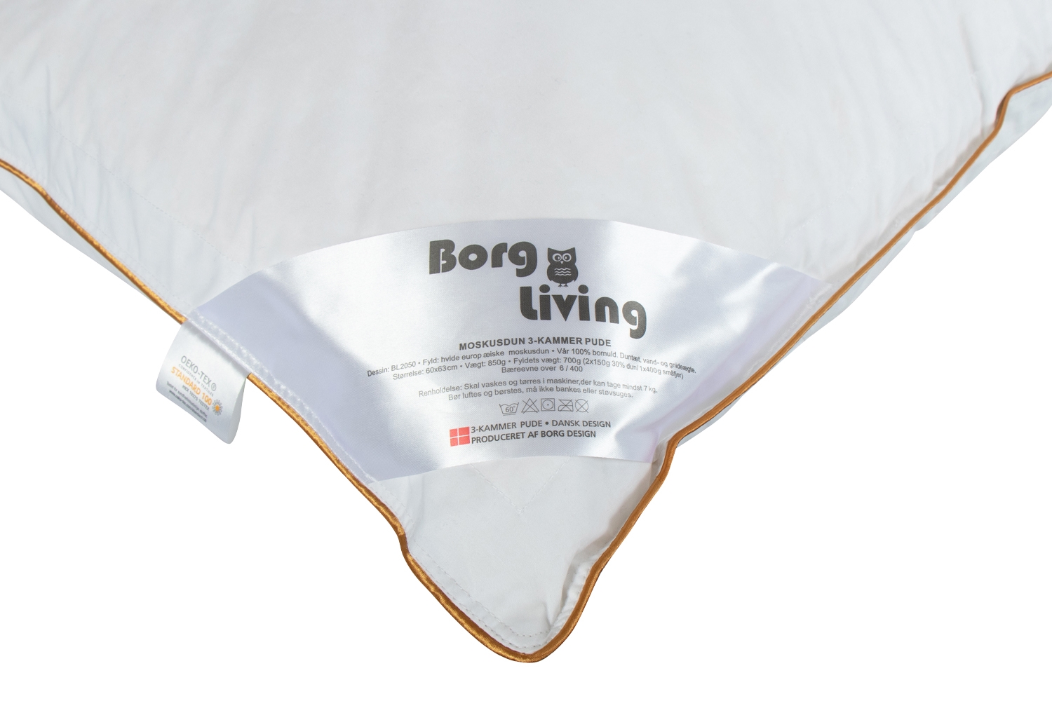 Voorpagina »Hoofdkussens Kussen met muskusdons - 60x63 cm - "middelhoog" - 3 kamers - Borg Living Bespaar57% Borg Living 95,4940,99EURSpar 55,- Op voorraad Aantal In winkelwagen Bekijk meer van:Borg Living Artikelnr:BL2050-9 Lees onze kussengids Lees meer over het onderhoud van dekbedden en kussens Bekijk ons grote assortiment kussenslopen Heb je vragen over het product? Muskusdons kussen met 3 kamersDraagvermogen: Ruim 6Borg Living Grootte: 60x63 cm Type: Middelhoog hoofdkussen Constructie: 3 kamre kussen Merk: Borg Living Vulgewicht: 700g Buitenkamer: 2x150g 100% muskusdons Vulling in de kern: 400g eendendons/kleine veren Draagvermogen: Buitenkamer: Meer dan 9 (oude meetmethode) 600 (nieuwe meetmethode) Kern: Meer dan 6 (oude meetmethode) 350 (nieuwe meetmethode) Hoes: 100% donsdicht katoenen cambric Wassen: 60° (Belangrijk om enzymvrij wasmiddel te gebruiken) Droger: Moet gedroogd worden met droogballen Garantie: 2 jaar Certificering: STANDARD 100 by OEKO-TEX® (HKX 19275) Het hoofdkussen heeft een constructie van 3 kamers. De twee buitenste kamers zijn gevuld met zacht, eiderdonsachtig muskusdons, terwijl de middelste kamer gevuld is met ondersteunende kleine veren. Met een kussen met 3 kamers krijgen je nek en schouders de ondersteuning die ze nodig hebben om de hele nacht comfortabel te liggen, zonder dat je het kussen hoeft bij te stellen om het goed te laten liggen. Vanwege de speciale constructie behoudt het kussen zijn vorm. Bekijk hier ons grote assortiment beddengoed in 140x200 cm Het Deense merk Borg Living produceert exclusieve series dekbedden, kussens en woningtextiel voor je huis. Het merk werd opgericht in 2013 en is onder andere bekend om hun innovatieve benadering van kwaliteit en design. De fantastische producten van Borg Living dragen bij aan een optimale en comfortabele nachtrust en decoreren je huis met moderne en stijlvolle woonaccessoires. Terug naar Hoofdkussens