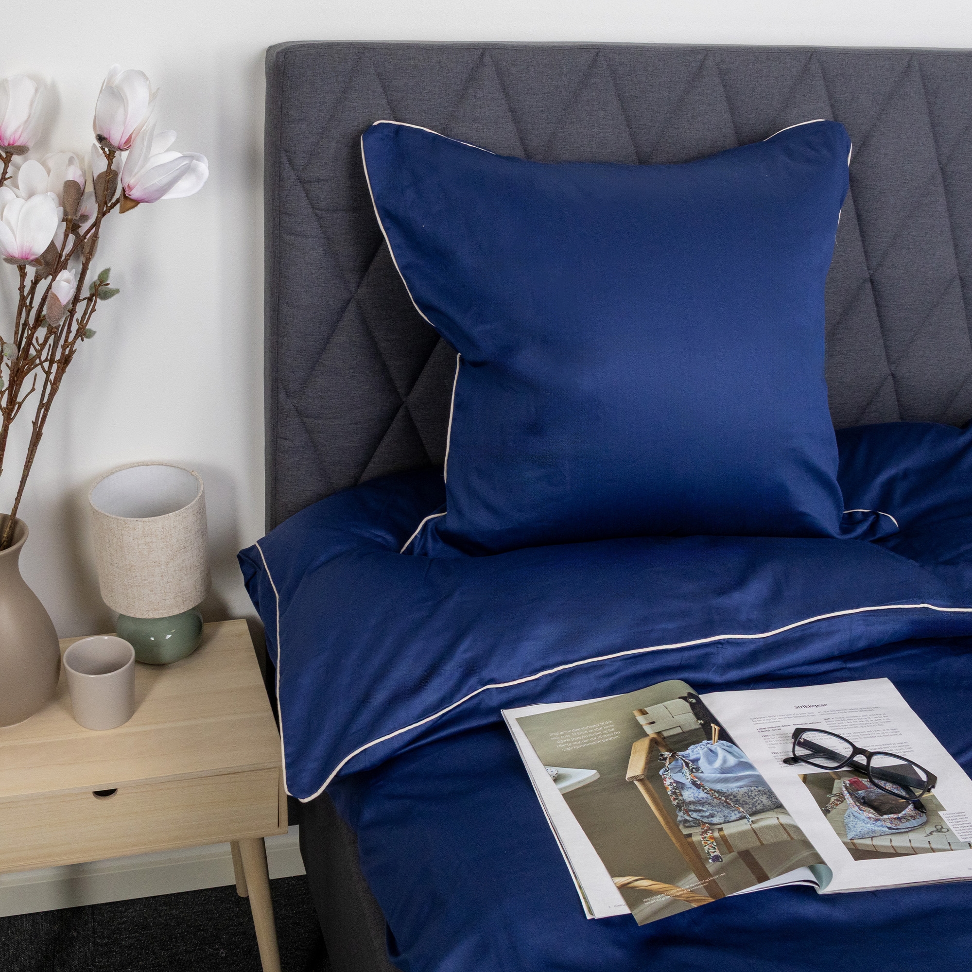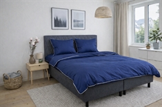 Creëer een elegant en luxueus uiterlijk in de slaapkamer met dit exclusieve kussensloop van 100% katoensatijn met decoratieve paspelrand van By Borg. Het effen design in diepblauw gecombineerd met een witte paspelrand geeft een strakke en verfijnde uitstraling, die de totale indruk van de slaapkamer versterkt.
