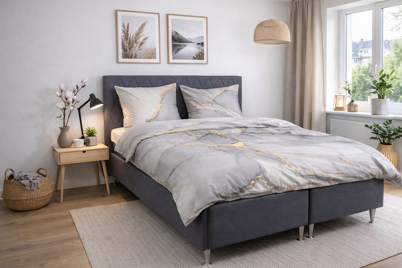 Katoensatijn is een natuurlijk en ademend materiaal dat bijdraagt aan een prettig slaapklimaat het hele jaar door. De stof voelt zijdezacht aan op de huid en combineert comfort met hoge slijtvastheid.