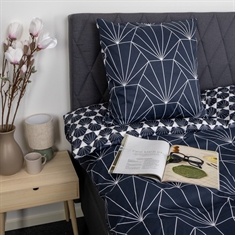 Het omkeerbare design geeft je twee verschillende looks in één kussensloop. De voorkant is versierd met een modern grafisch patroon, terwijl de achterkant een meer ingetogen geometrische uitstraling heeft. Deze losse kussensloop maakt het eenvoudig om je extra kussens te combineren met de rest van je beddengoed en geeft meer flexibiliteit in de inrichting.