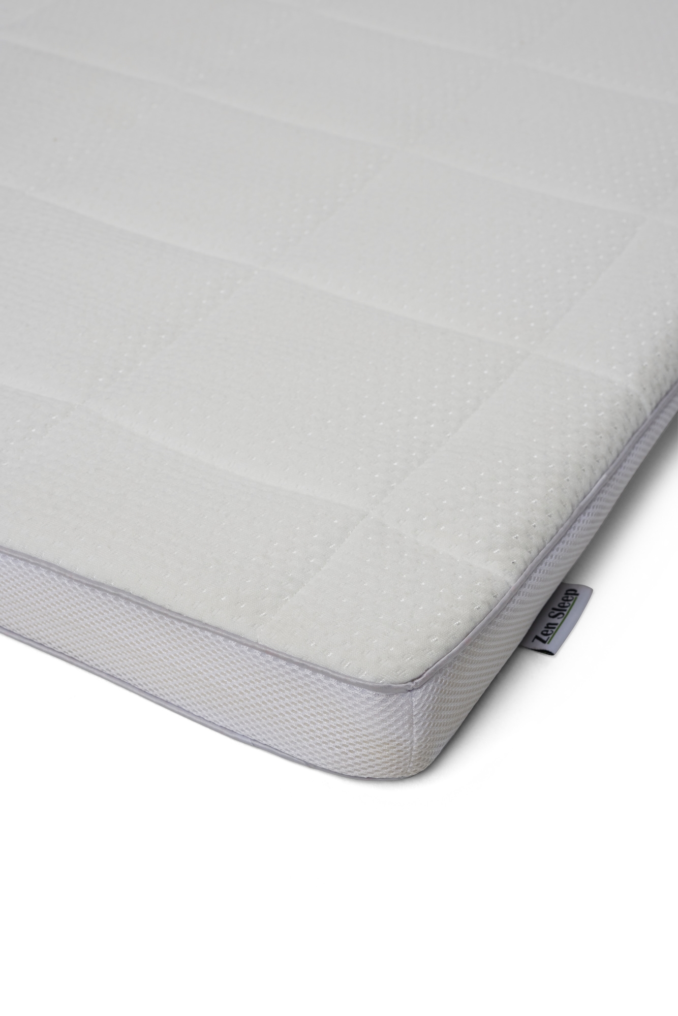 Voorpagina »Topmatrassen en matrasbeschermers Latex topmatras - 180x210 cm - 5 cm hoog - Latex & natuurlatex - Zen Sleep topmatras voor tweepersoonsbed Bespaar58% Zen Sleep 748,49312,99EURSpar 436,- Gratis verzending voor dit artikelWeinig op voorraad Aantal In winkelwagen Bekijk meer van:Zen Sleep Artikelnr:Zen500-180x210 Lees onze topmatras gids Bekijk ons assortiment extra lange lakens Bekijk ons grote assortiment matrasbeschermers Heb je vragen over het product? 180x210x5 cmHoog comfortLatex topmatras Grootte: 180x210 cm Hoogte: 5 cm Type: Latex topmatras Vulling: 50 mm ventilerende latex kern Merk: Zen Sleep Kernsamenstelling: 30% natuurlatex / 70% synthetische latex Kernkwaliteit: 80 kg/m3 medium/stevig Hoes: Bamboe en polyester hoes 40/60, antislip onderkant Wassen: 30° - Afneembare hoes Verpakking: Topmatras wordt opgerold en vacuüm verpakt geleverd Certificering: STANDARD 100 by OEKO-TEX® (18. HCN. 42834) Een latex topmatras biedt een hoge progressieve ondersteuning en comfort. Dit betekent voor jou dat de matras precies ondersteunt waar je het nodig hebt. Daarnaast werkt de matras mee met het lichaam, omdat latex steviger wordt naarmate het gewicht en de belasting toenemen. Dit is slechts een van de voordelen van latex. Latex' natuurlijke eigenschappen zijn ademend, hypoallergeen en zeer elastisch. De mix van natuurrubber en synthetische latex geeft de matras een ongelooflijk hoge elasticiteit en aanpassingsvermogen. Overtollige lichaamswarmte wordt, anders dan bij schuim, niet door de matras opgenomen. De matras voert de warmte automatisch af, waardoor je lichaam beter kan ademen en de juiste basis biedt voor een optimale nachtrust. De latex topmatras heeft een gegoten rubberachtige kern, gemaakt van natuurrubber en synthetische latex. De kern is doorboord met kleine gaatjes om ondersteunende zones te creëren en de matras precies de juiste stevigheid te geven voor optimaal comfort, ademend vermogen en ondersteuning. Latex is voor degenen die niet graag wegzinken in de matras, maar toch een topmatras willen met ongelooflijk veel comfort en goede ondersteuning. De topmatras is geproduceerd met een hoes van bamboe en polyester. Dankzij deze combinatie van materialen krijg je een topmatras die zowel vocht als warmte van je lichaam weg transporteert. Bamboe is bovendien een allergievriendelijk, antibacterieel en zacht materiaal dat de matras de perfecte afwerking voor je bed geeft. Bescherm je topmatras en bed altijd met een matrasbeschermer. Op deze manier verleng je de levensduur van je topmatras, omdat het geen vocht en afvalstoffen opneemt die uit je lichaam worden afgegeven. De matras blijft zo langer schoon, hygiënisch en netjes op het ligvlak. De matrasbeschermer kan eenvoudig van de matras worden gehaald en volgens de instructies worden gewassen. Wij raden aan altijd een matrasbeschermer op je matras of topmatras te gebruiken. Zie matrasbeschermers in dezelfde grootte Ingebruikname: Omdat de topmatras vacuüm verpakt is, moet deze na het uitpakken 72 uur liggen om zijn volledige vorm en comfort te bereiken. Zen Sleep is een Deens merk dat sinds 2012 woningtextiel produceert. Hun producten stralen kwaliteit en comfort uit. In het grote assortiment vind je onder andere dekbedden, kussens, topmatrassen en matrasbeschermers. Met hoogwaardige grondstoffen opent Zen Sleep de deuren naar een slaap vol veiligheid en welzijn. Zen Sleep zegt: "Met de consument centraal, worden alleen de beste producten gemaakt". Terug naar Topmatrassen en matrasbeschermers Misschien ook interessant voor jou: Topmatras - 90x200 cm 5 cm hoog - NASA Memory Foam - Borg Living - Ergonomisch topmatrasTopmatras - Borg Living Ergonomisch Drukverlagend 90x200x5 cm - Eenpersoonsbed Adviesprijs : 340,13 Bespaar : 244,64 340,49 EUR95,49 EUR Hoeslaken voor topmatras 90x200 cm - Zwart - 100% katoen satijn - Hoeslaken voor topmatrasHoeslaken voor topmatras - Zwart 100% katoen satijn 90x200x8 cm Adviesprijs : 40,81 Bespaar : 20,32 47,99 EUR20,49 EUR