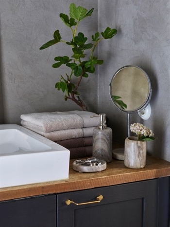Voorpagina »Decoratieve artikelen Bespaar50% Halvor Bakke Make-up Spiegel - Steen van Halvor Bakke - Sanders - Hoogte 35 cm. Make-up spiegelZoom effect35x17 cm 54,4927,49EURBespaar 27,- Aantal In winkelwagen Weinig op voorraad Levering: 1-2 Dagen Artikelnr:108357 Specificaties Type: Make-up spiegel Grootte: 35x17 cm Kleur: Chroom Materiaal: Chroom en steen met marmer effect Klassieke make-up spiegel - Elegantie voor je badkamer Deze Halvor Bakke make-up spiegel is ontworpen om een vleugje elegantie toe te voegen aan je badkamer. Met zijn klassieke ronde design en een hoogte van 35 cm is hij zowel praktisch als stijlvol. De spiegel is draaiend, waardoor je je gezicht vergroot kunt zien aan één kant. Dit is ideaal voor het aanbrengen van make-up en huidverzorgingsroutines. Draaibare spiegel Het slimme aan deze cosmetische spiegel is het draaiende ontwerp. Hierdoor kun je wisselen tussen een gewone spiegel en een vergrootte spiegel. De vergrote zijde is ideaal voor nauwkeurig aanbrengen van make-up en gedetailleerde huidverzorging. Deze functie maakt de spiegel zowel functioneel als veelzijdig. Kijk ook eens in de categorie Badkamer accessoires. Bekijk ons aanbod handdoekpakketten Bekijk onze selectie opbergen voor de badkamer Heb je vragen over het product? Lees meerVerbergen FAQ - Veelgestelde vragenHoe zijn levertijden en verzendkosten?Wij bieden een snelle levering voor de meeste artikelen met een verwachte levertijd van 2–4 werkdagen, omdat we alle artikelen zelf op voorraad hebben en bestellingen dagelijks verzenden. De verzendkosten zijn laag: Gratis verzending bij een bestelwaarde vanaf € 90. Bij een bestelwaarde onder € 90 gelden € 9,50 verzendkosten. Lees hier meer: VerzendkostenWat als ik mijn bestelling wil retourneren?Bij HOME-TEX.nl heeft u een onbeperkt retourrecht, zolang het artikel ongebruikt en in de originele verpakking wordt teruggestuurd.Hoe stuur ik een artikel terug?Als u een artikel wilt retourneren, dient de retourzending via DHL of GLS te gebeuren. Het artikel moet goed verpakt zijn en ongebruikt met de originele verpakking worden teruggestuurd.Kan ik betalen met iDEAL?Nee, het is helaas niet mogelijk om met iDEAL te betalen op HOME-TEX.nl. U kunt uw bestelling wel veilig en eenvoudig betalen met Klarna, waarbij u verschillende betaalmogelijkheden heeft, afhankelijk van wat Klarna aanbiedt.Wat moet ik doen als mijn artikel beschadigd is?Als u een artikel ontvangt met fouten of defecten, neem dan alstublieft zo snel mogelijk contact op met onze klantenservice. Terug naar Decoratieve artikelen