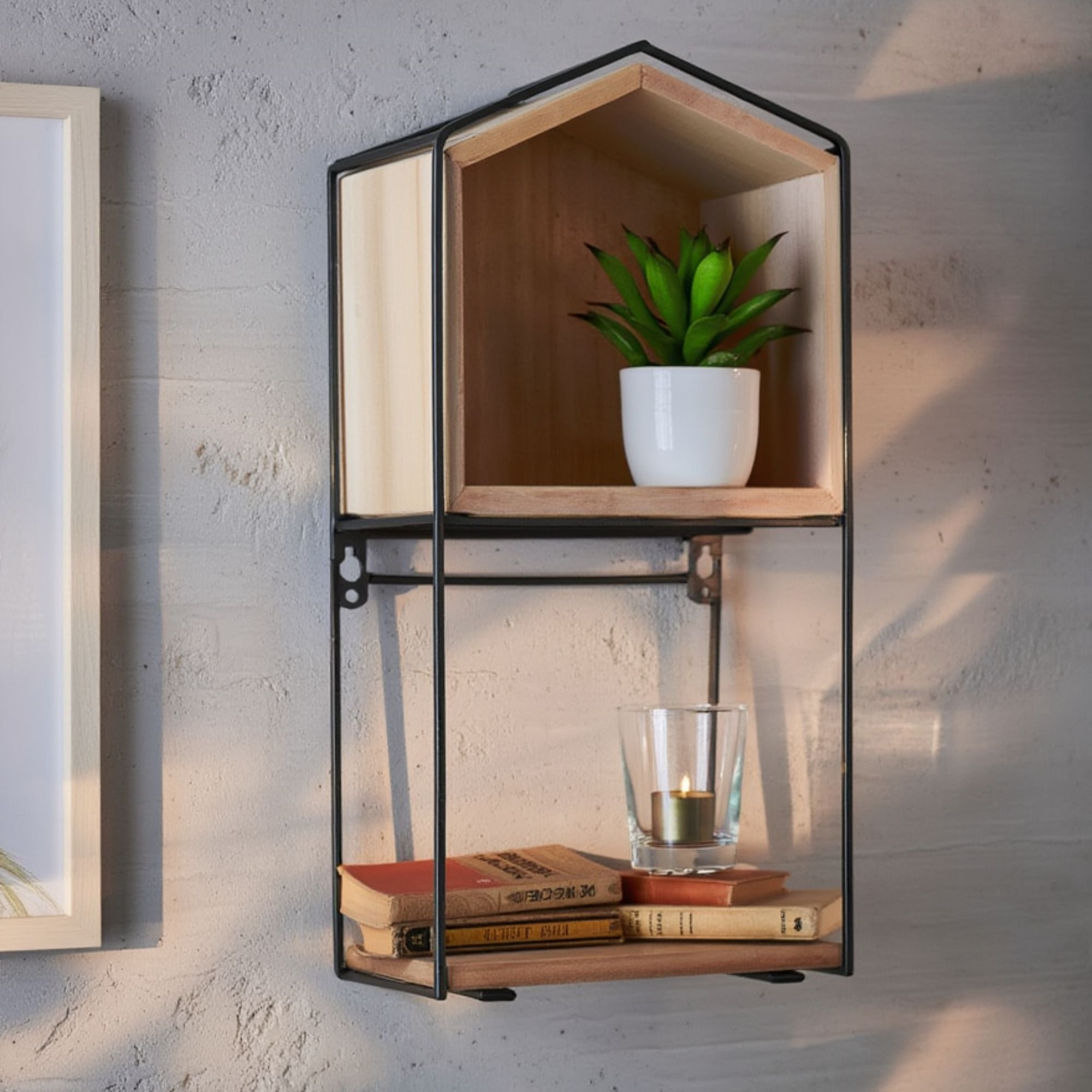 Voorpagina »Decoratieve artikelen Metalen plank - Hangend of staand - Hoogte 40 cm. - Zwart gelakt metaal en hout Bespaar43% HOME-TEX 47,9927,49EURBespaar 21,- Op voorraad Aantal In winkelwagen Bekijk meer van:HOME-TEX Artikelnr:PT130 Heb je vragen over het product? Stijlvol ontwerpRobuuste constructieMultifunctioneel Materiaal: Zwart gelakt metaal Hout Grootte: Hoogte: 40 cm. Breedte: 20 cm. Met schroefgaten: Ja WandplankDeze wandplank is zowel praktisch als stijlvol. Hij is gemaakt van zwart gelakt metaal en hout, wat zorgt voor een mooi contrast en een moderne uitstraling. De plank kan worden gebruikt om je favoriete spullen tentoon te stellen of om essentiële dingen binnen handbereik op te bergen.Met zijn hoogte van 40 cm en breedte van 20 cm is hij ideaal voor zowel grote als kleine ruimtes.Zwart gelakt metaalZwart gelakt metaal staat bekend om zijn duurzaamheid en robuustheid. Het is bestand tegen zowel slijtage als de tand des tijds, wat het een ideale keuze maakt. De zwarte lak voegt een verfijnde en moderne uitstraling toe die in veel interieurstijlen past.Multifunctionele plankDeze plank is niet alleen een mooie inrichting, maar ook een praktische opbergoplossing. Je kunt hem op veel verschillende manieren gebruiken, afhankelijk van je behoeften en wensen. Gebruik hem om je favoriete spullen tentoon te stellen of om kleine dingen zoals sleutels en zonnebrillen op orde te houden. De keuze is aan jou.Voor soortgelijke producten, bekijk onze categorie Inrichting. Terug naar Decoratieve artikelen