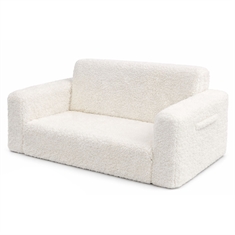 De opgevouwen bank meet 40 x 76 x 38 cm en kan eenvoudig worden uitgeklapt tot een ligoppervlak van 100 cm lengte. Hij biedt voldoende ruimte voor twee kleinere kinderen en is ideaal als kindersofa voor spel, gezelligheid en ontspanning. De zachte pluche bekleding voelt prettig aan op de huid, terwijl de schuimvulling zorgt voor goede ondersteuning en comfort.