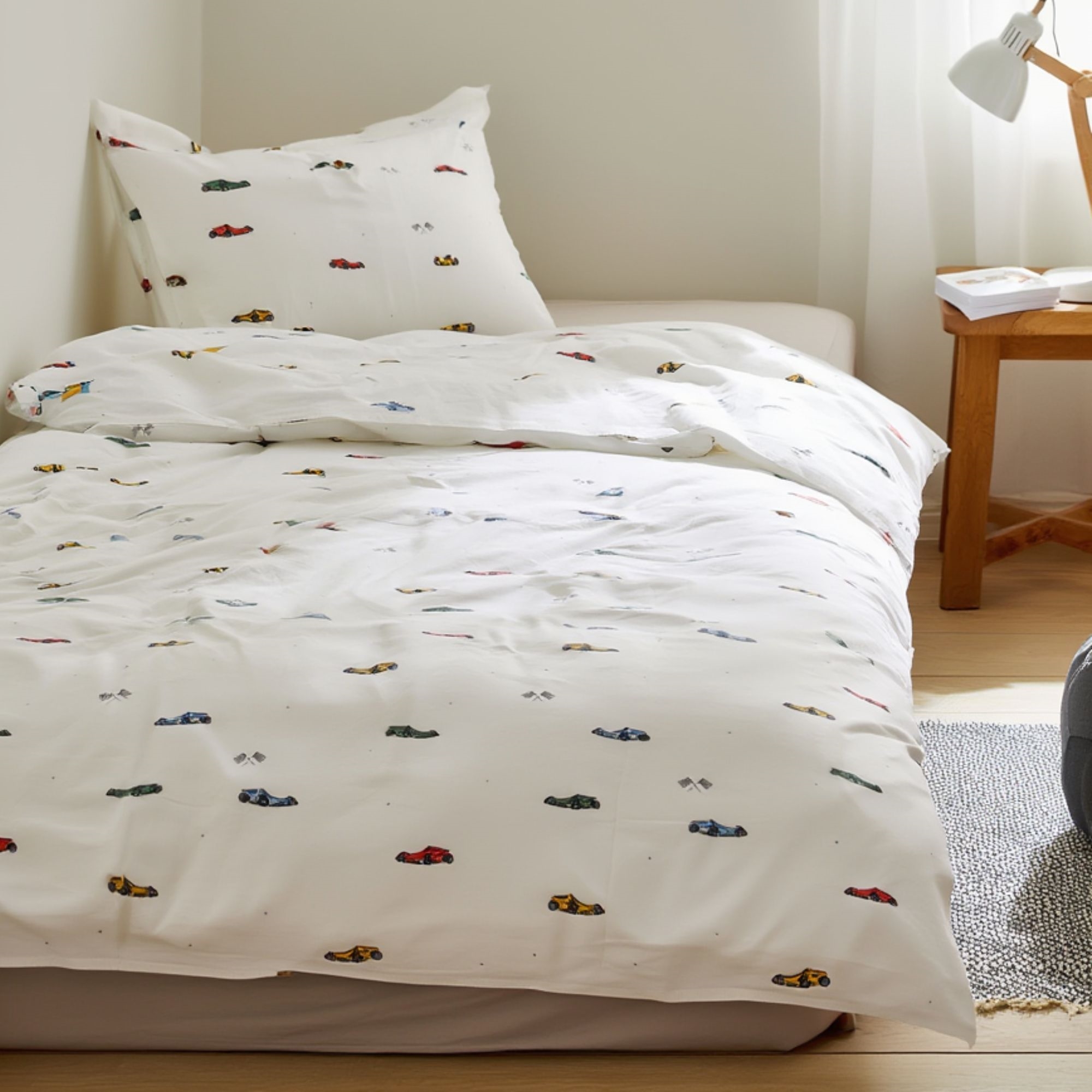By Mats juniorbeddengoed 100x140 cm - wit met raceauto's