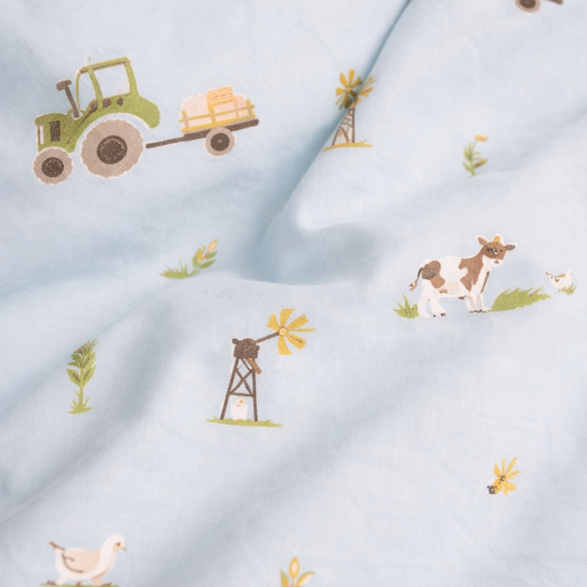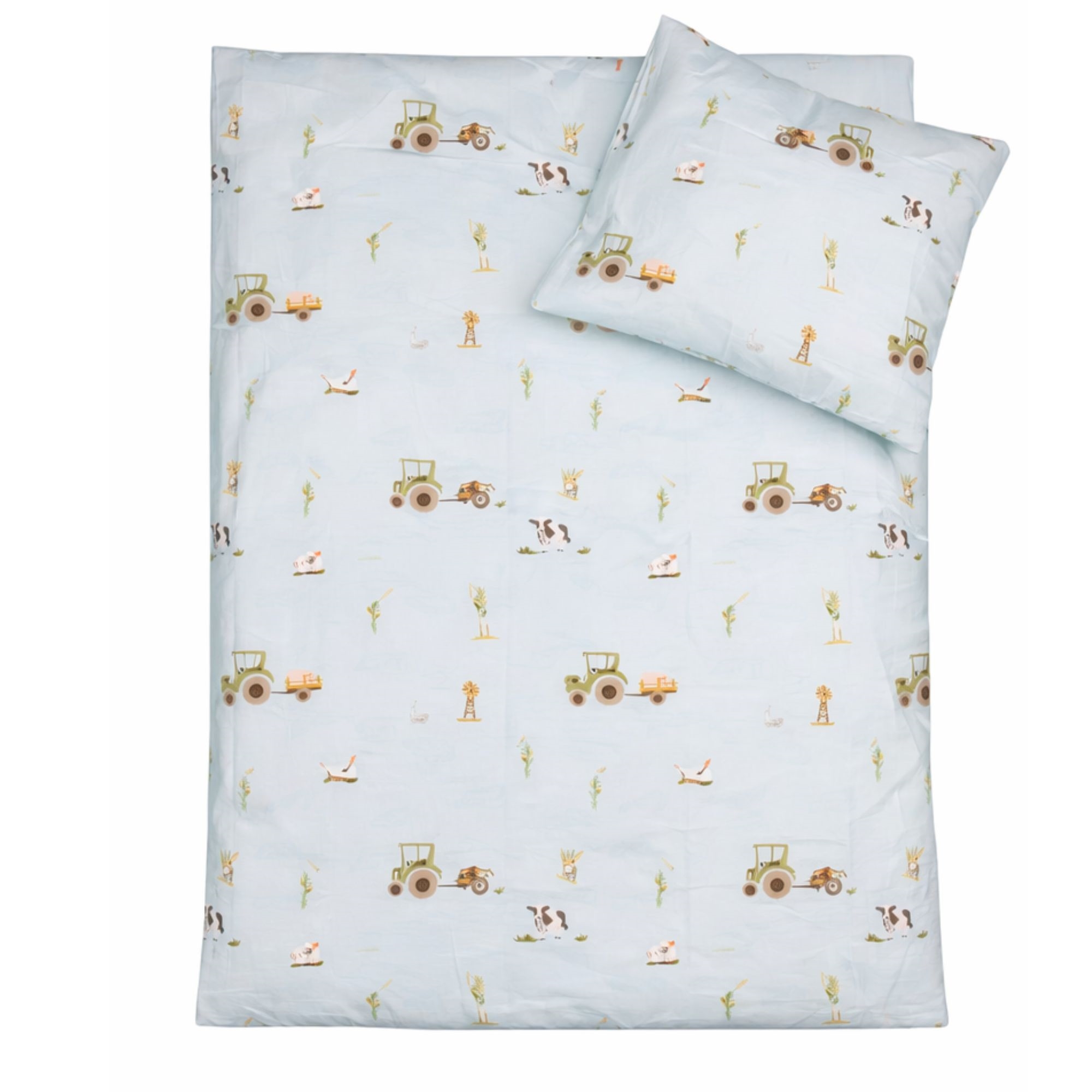 By Mats babybeddengoed 70x100 cm - lichtblauw met tractor en koeien