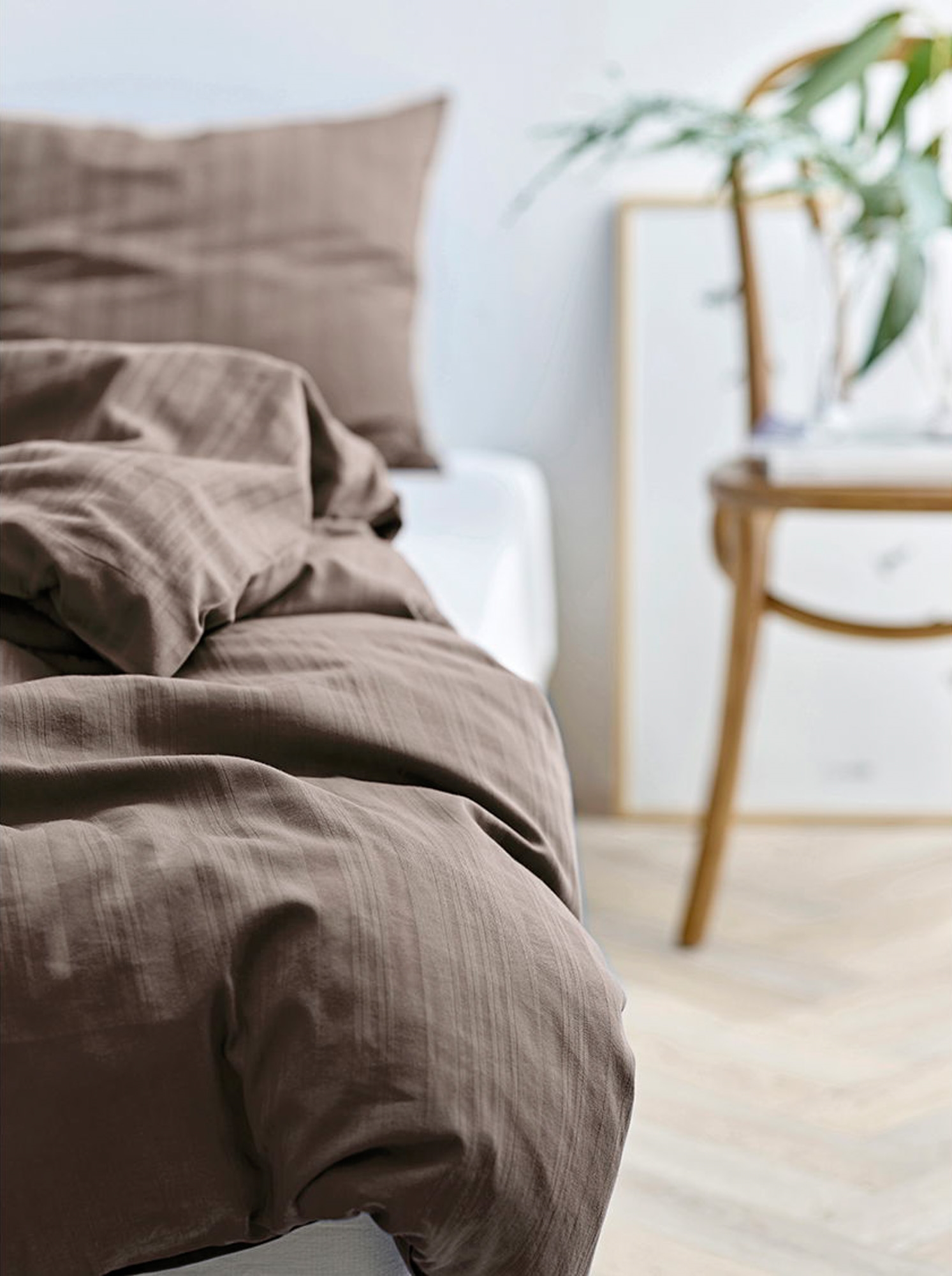 Droomt u van een echte hotelsfeer in de slaapkamer? Met dit luxe damastgeweven beddengoed van Södahl krijgt u een combinatie van elegant design, uitstekend comfort en hoge kwaliteit. Het strakke gestreepte ontwerp in een mooie bruine kleur geeft een rustige en exclusieve uitstraling, die perfect past in een Noords geïnspireerd interieur.