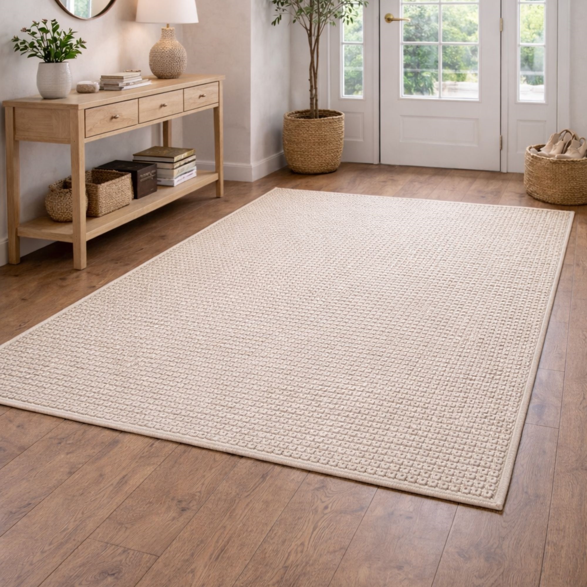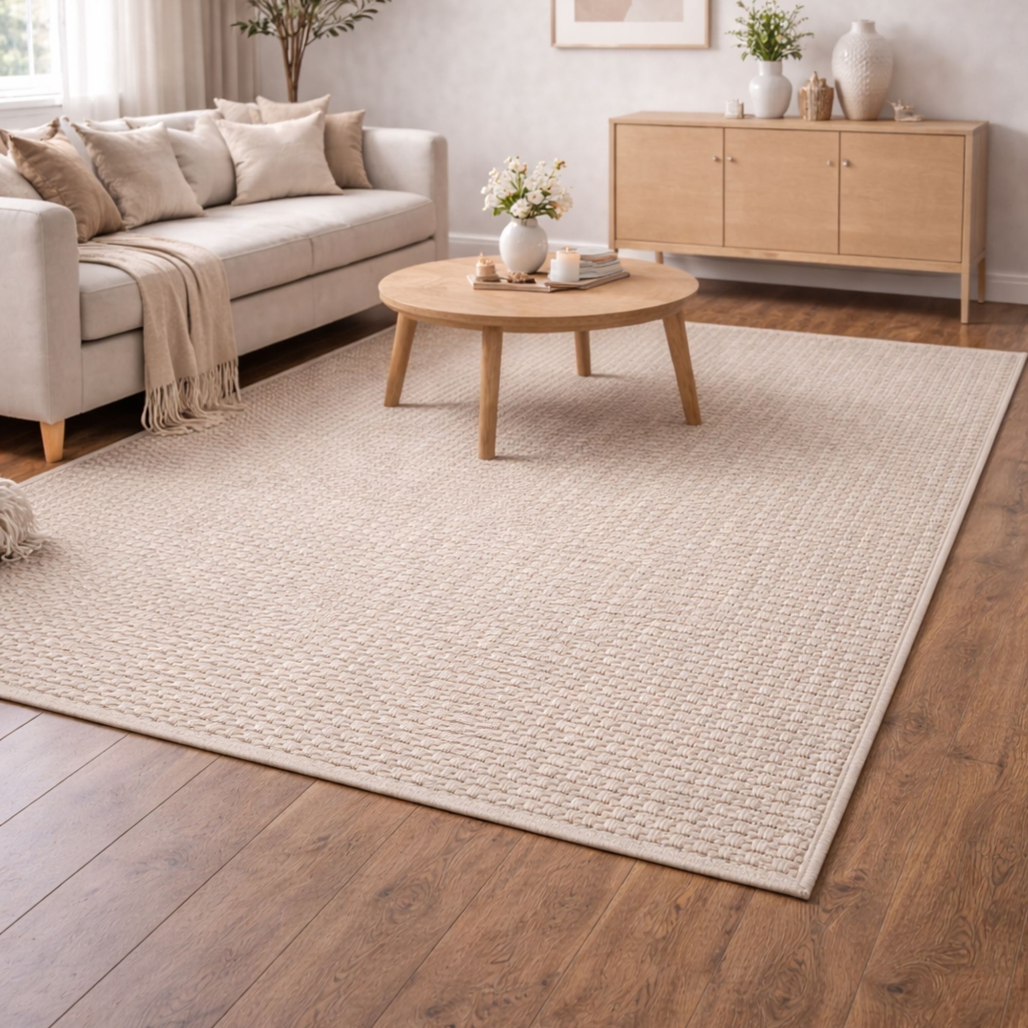 Mis je een eenvoudige en gemakkelijke manier om samenhang in je huis te creëren? Dan kan dit mooie vloerkleed het element zijn dat je interieur samenbrengt. Elegant beige vloerkleed dat de perfecte keuze is als je een tijdloos ontwerp wilt dat extra stijl aan je huis geeft. De fijne structuur en de lichte, natuurlijke kleur geven de ruimte een harmonieuzer uiterlijk dat in elk huis past. Het kleed is ideaal in de woonkamer onder de salontafel, in de slaapkamer of als een zacht en uitnodigend element in de hal. Het vloerkleed is gemaakt van een slijtvast en praktisch materiaal. Dat maakt het kleed bestand tegen dagelijks gebruik en geschikt voor ruimten met activiteit. Het zorgt er ook voor dat het vloerkleed beter blijft liggen. Je krijgt een vloerkleed dat zowel functioneel als mooi is voor vele jaren. Met een Helsinki-vloerkleed worden comfort, duurzaamheid en Noordse vormgeving gecombineerd in één oplossing – een veilige keuze als je een vloerkleed wilt dat zowel praktisch als esthetisch aantrekkelijk is. Je kunt het mooie vloerkleed vinden in verschillende maten en kleuren, afhankelijk van wat het beste bij jouw interieur past. Alle kleden zijn gecertificeerd met STANDARD 100 by OEKO-TEX®, wat betekent dat het vloerkleed getest is op schadelijke stoffen. Jouw zekerheid voor een product zonder schadelijke chemische stoffen – en een gezonder binnenklimaat in huis.