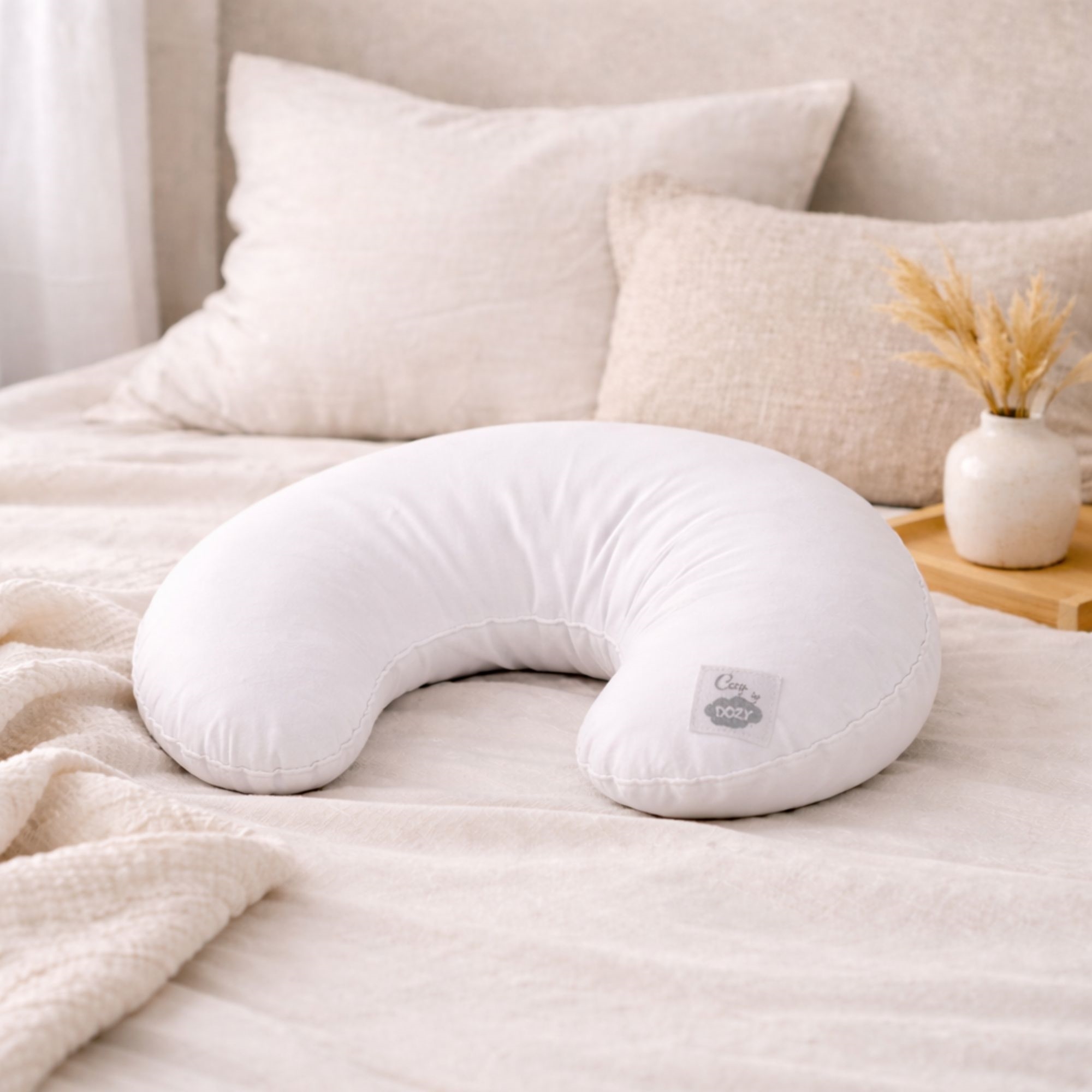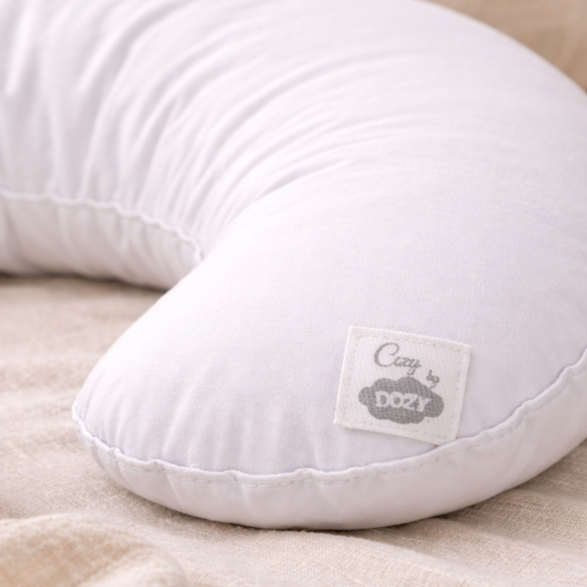 De voedingskussen van Cozy by DOZY is ontwikkeld voor kersverse ouders die een combinatie van comfort, ondersteuning en kwaliteit wensen tijdens het voeden. Met zijn zachte, effen witte hoes van 100% biologisch katoen krijgt u een voedingskussen die zowel zacht is voor de gevoelige huid van de baby als comfortabel voor moeder om langere tijd te gebruiken. De katoenen kwaliteit is ademend, natuurlijk en vrij van schadelijke stoffen, wat de beste voorwaarden schept voor een veilige en comfortabele voeding.