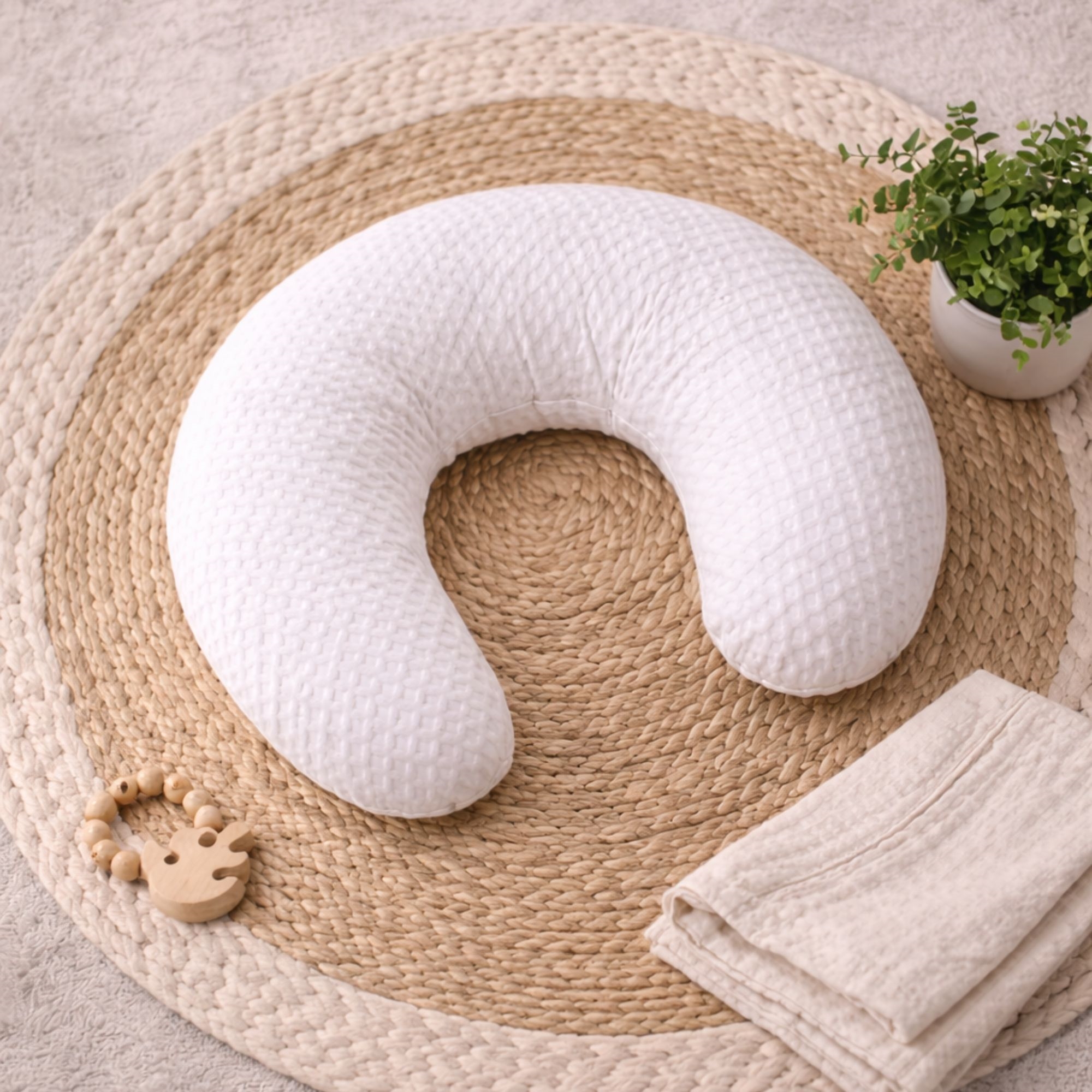 De voedingskussen is bovendien praktisch en gemakkelijk schoon te houden in een drukke dagelijkse routine. De afneembare hoes kan snel worden verwijderd en in de wasmachine worden gewassen, zodat hygiëne en comfort altijd optimaal zijn. De witte kleur maakt het eenvoudig om de voedingskussen te combineren met andere interieurstukken in huis.